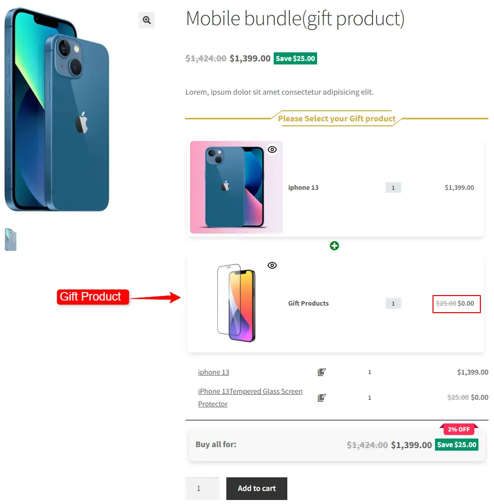 - Gift a Product in WooCommerce with Product Bundles