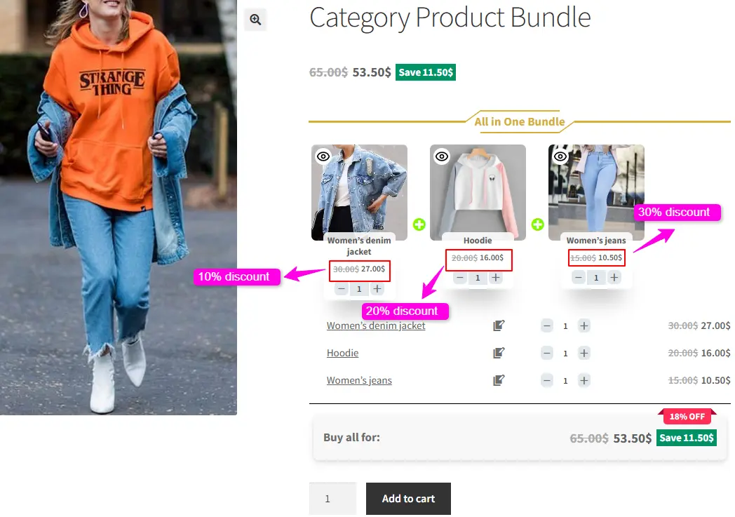 The Easy WooCommerce Product Bundles free plugin offers two pricing strategies:
