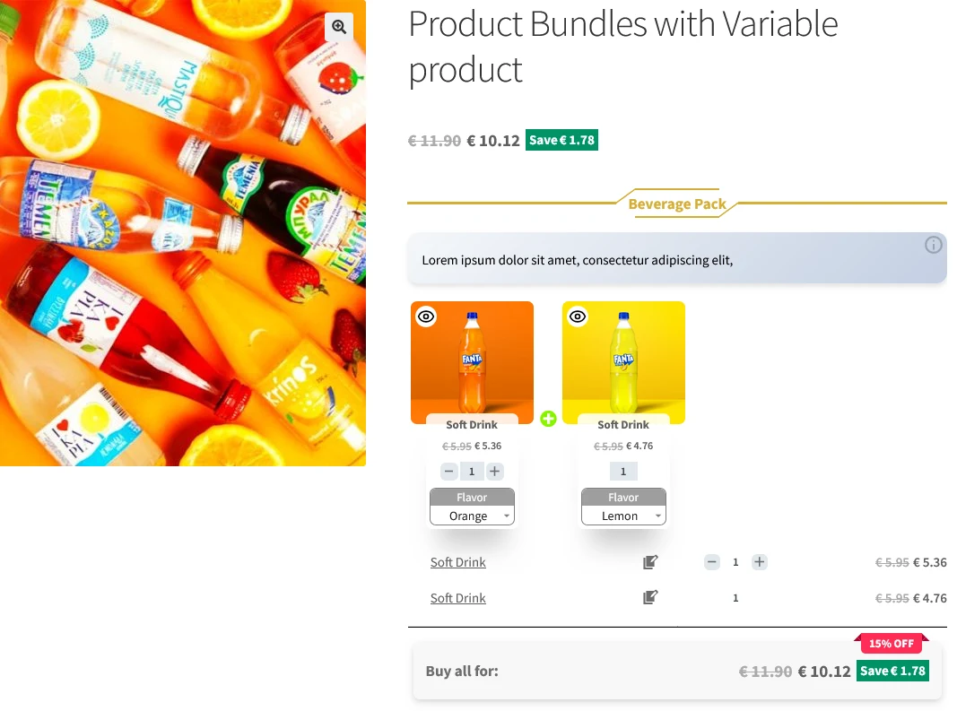 With product bundles, customers can create their own custom bundles from available products, choose the desired variations, and set the quantity for each item. The result? A fully personalized bundle offered at an attractive discounted price that encourages higher spending.